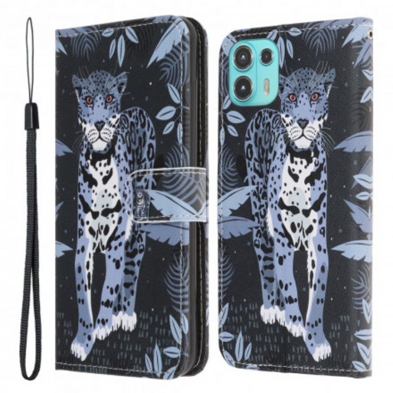 Flip Cover Motorola Edge 20 Lite Leopard Strappy
