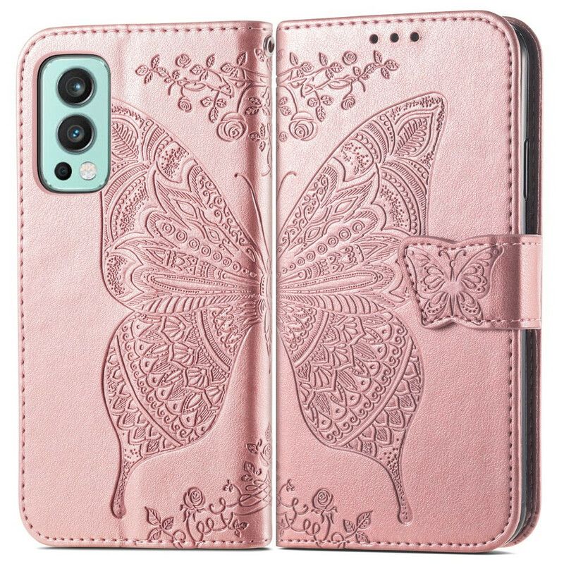 Et suverænt cover, dekoreret med sommerfugle, til at sikre din OnePlus Nord 2 5G i en tegnebogsstil på daglig basis.
