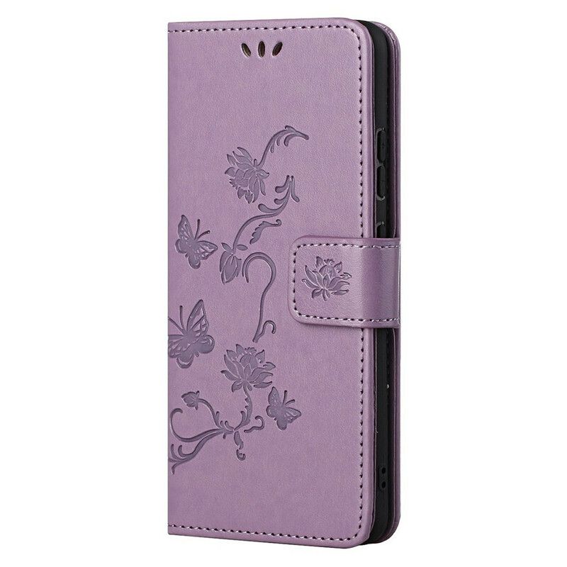 Flip Cover Oneplus Nord 2 5g Sommerfugle Og Blomster Strappy