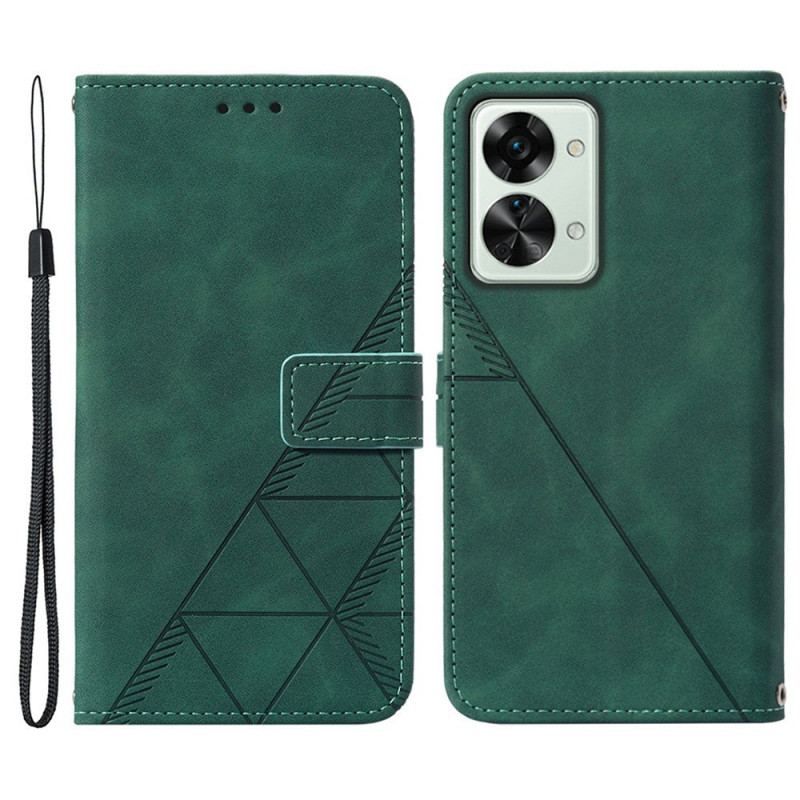 Dette Etui Med Trekantmønster Og Rem Beskytter Oneplus Nord 2T 5G Fuldt Ud, Samtidig Med At Det Er En Praktisk Pung Og Stativ.