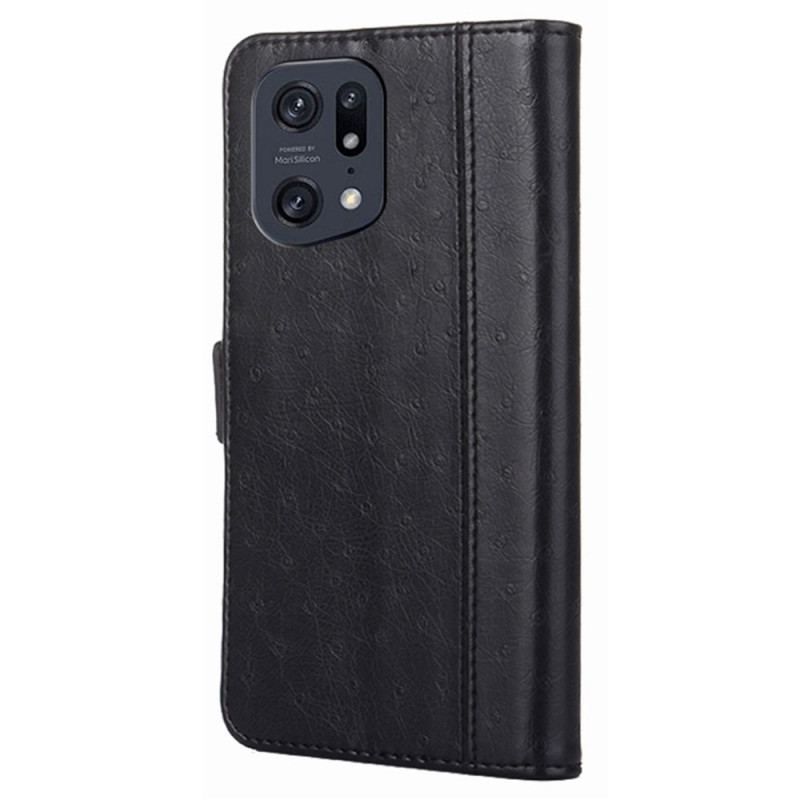 Din Oppo Find X5 Pro Er Meget Original Med Dette Tofarvede Imiterede Lædercover Med Strudsehudstekstur, Der Fungerer Som En Pung.