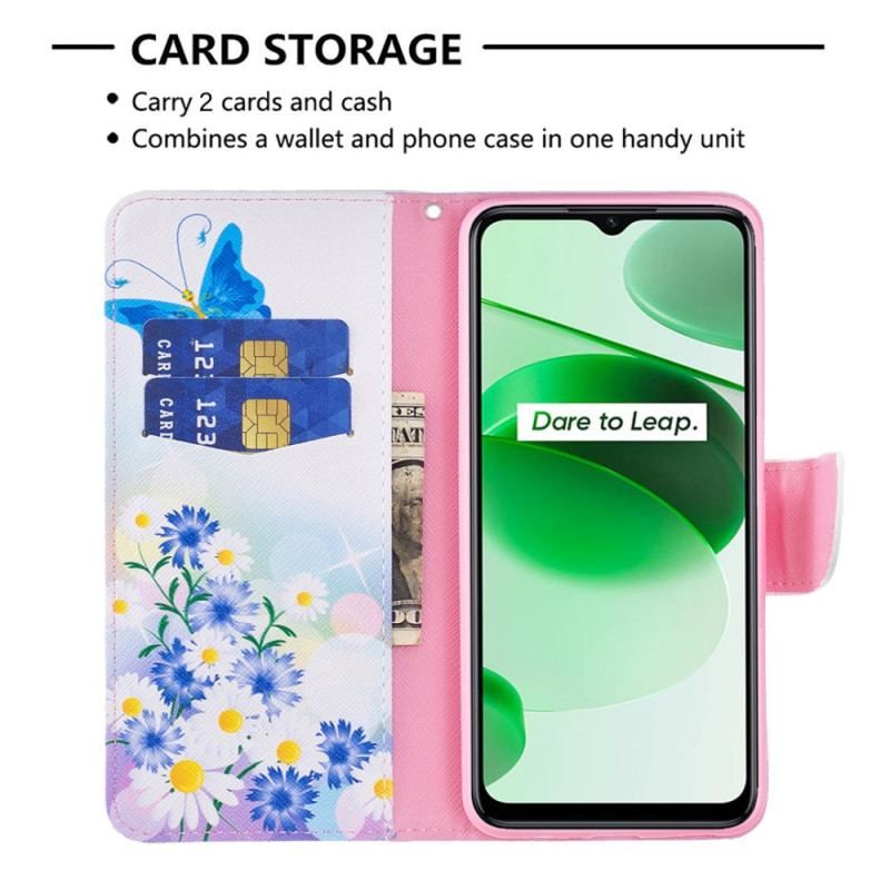 Dette Cover, Dekoreret Med Blomster Og Sommerfugle, Beskytter Realme C35 Pænt Mod Stød, Ridser, Mærker Og Støv.