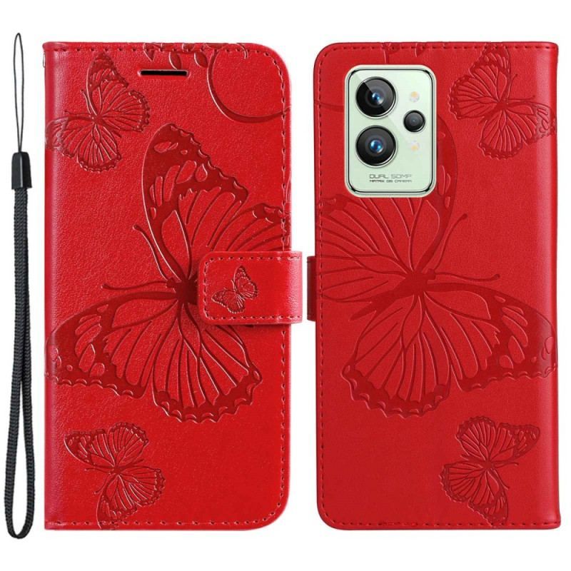 Flip Cover Realme GT2 Pro Med Snor Kæmpe Sommerfugle Med Rem