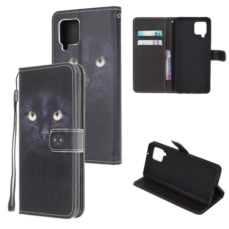 Flip Cover Samsung Galaxy A12 Mobilcover Sorte Katteøjne Med Rem