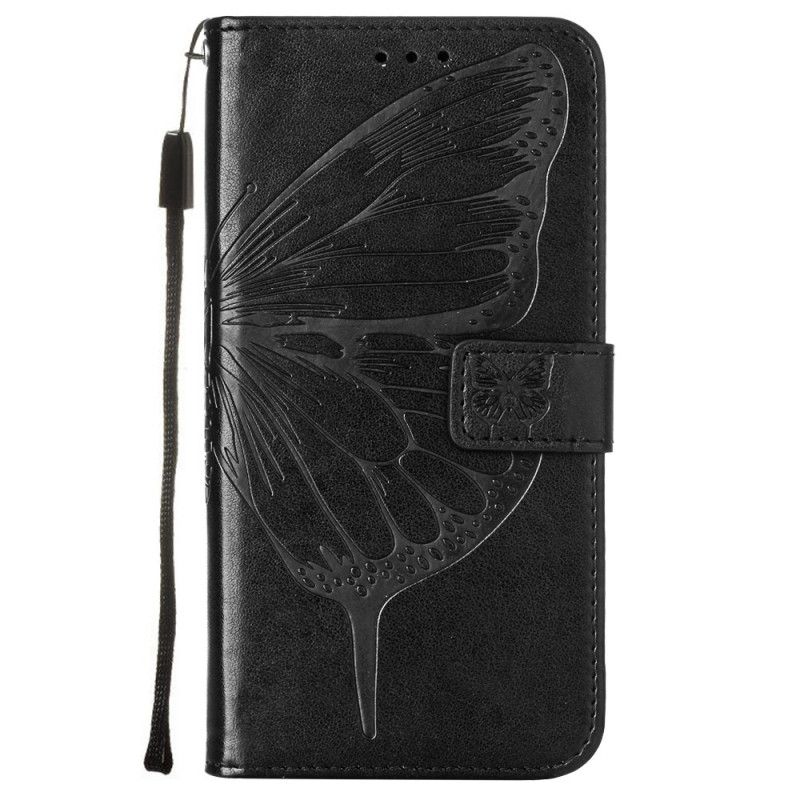 Flip Cover Samsung Galaxy A51 5G Sort Designer Sommerfugl Med Rem