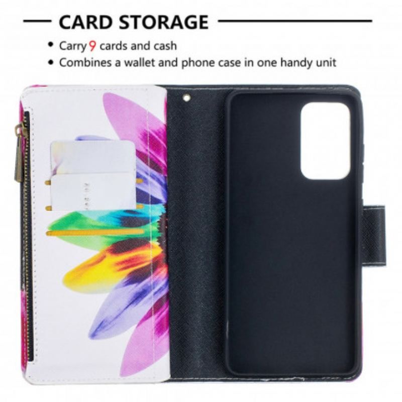 Flip Cover Samsung Galaxy A52 4G / A52 5G / A52s 5G Blomsterlomme Med Lynlås