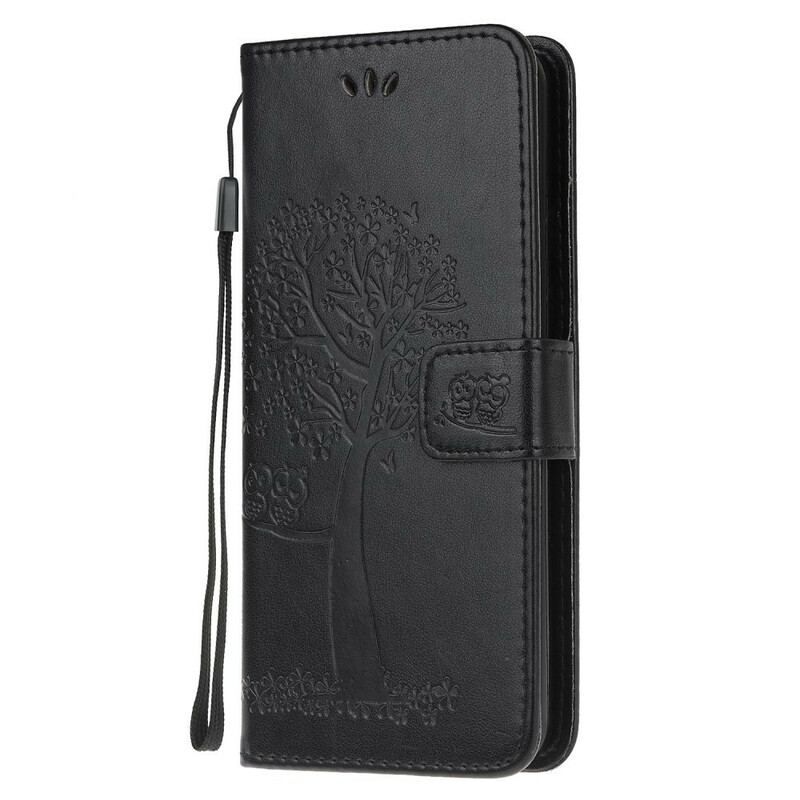Flip Cover Samsung Galaxy A52 4G / A52 5G / A52s 5G Med Snor Thong Træ Og Ugler