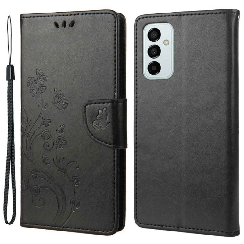 Dette Cover Til Samsung Galaxy M23 5G, Med Sommerfugle Og Blomster, Kan Også Bruges Som Pung Og Håndfri Holder.