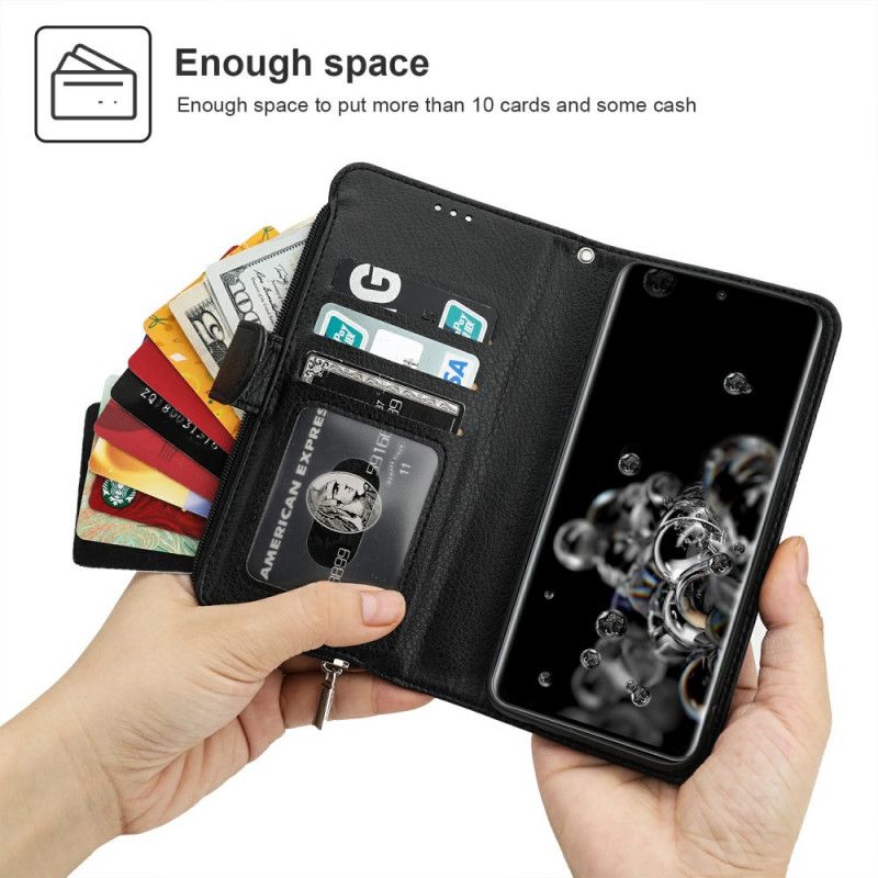 Et fremragende mikrofiberdæksel i læderstil med adskillige kortholder og en ekstra lynlåslomme til beskyttelse af din Samsung Galaxy S20 Ultra.