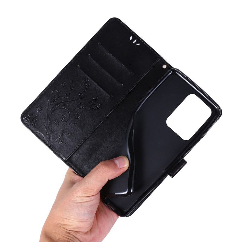 Sommerfuglen og blomsterne i vinddækslet med magnetisk klap sikrer beskyttelsen af din Samsung Galaxy S20 Ultra.