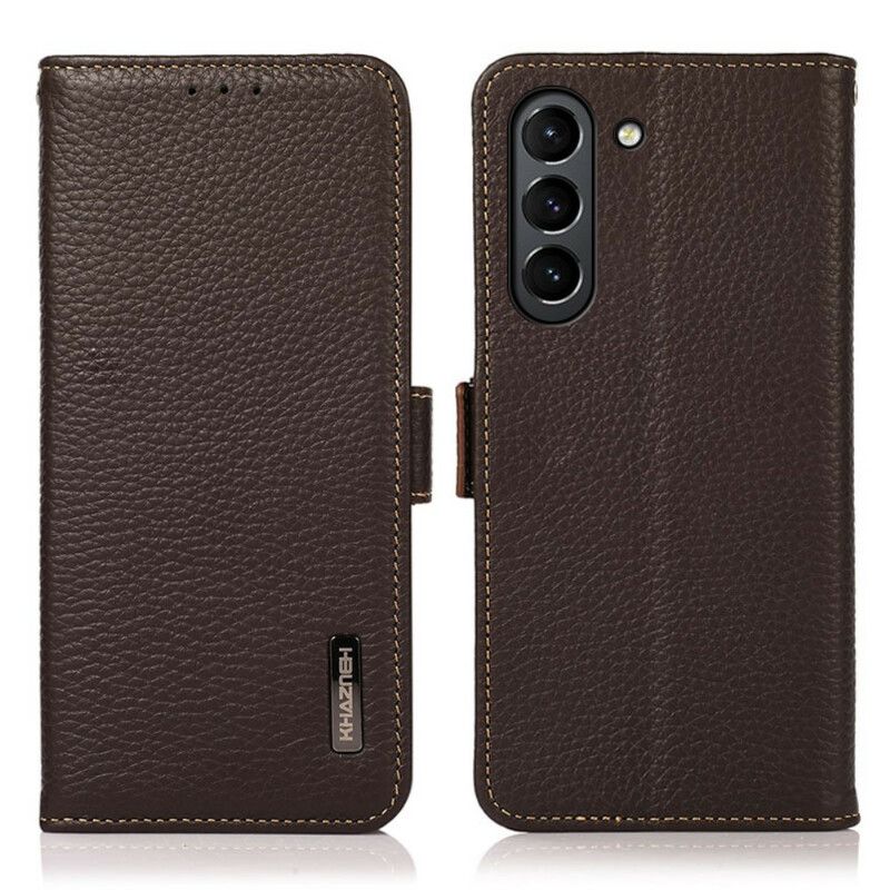 Hele din Samsung Galaxy S21 FE er perfekt sikker med dette etui, fra mærket KHAZNEH, i ægte litchi-læder.