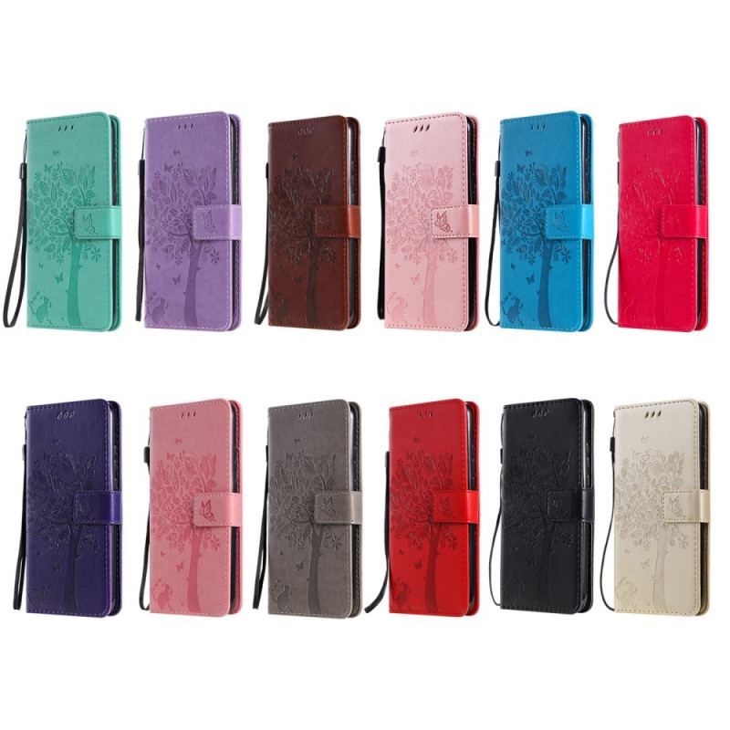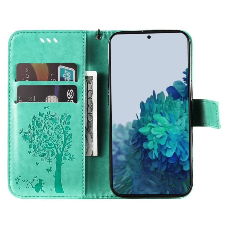 Flip Cover Samsung Galaxy S22 Plus 5G Med Snor Træ Og Strappy Kat