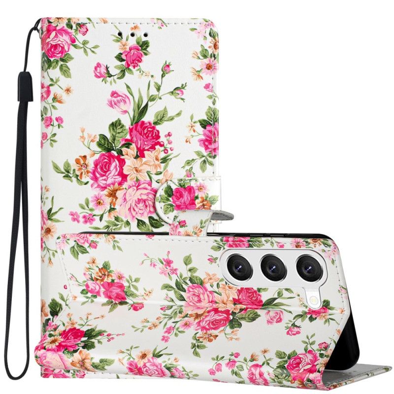 Flip Cover Samsung Galaxy S24 Plus 5g Røde Blomster Med Rem