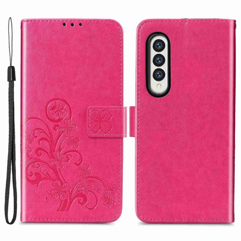 Flip Cover Samsung Galaxy Z Fold 4 Kløver Mønster Med Rem