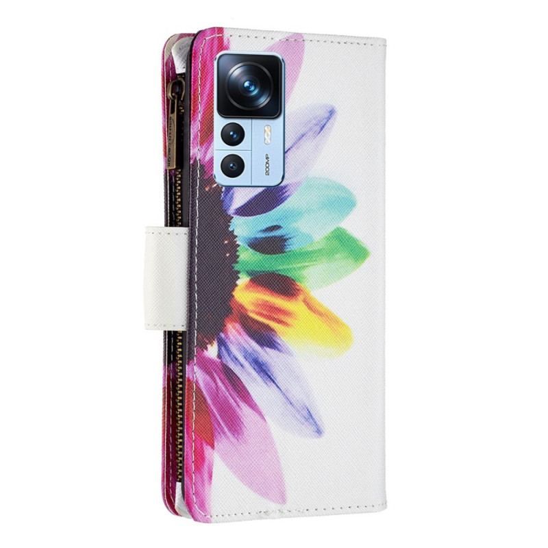 Flip Cover Xiaomi 12T / 12T Pro Blomsterlomme Med Lynlås