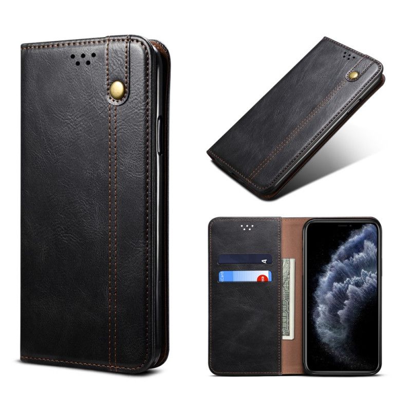Flip iPhone 11 Sort Vokset Imiteret Læder