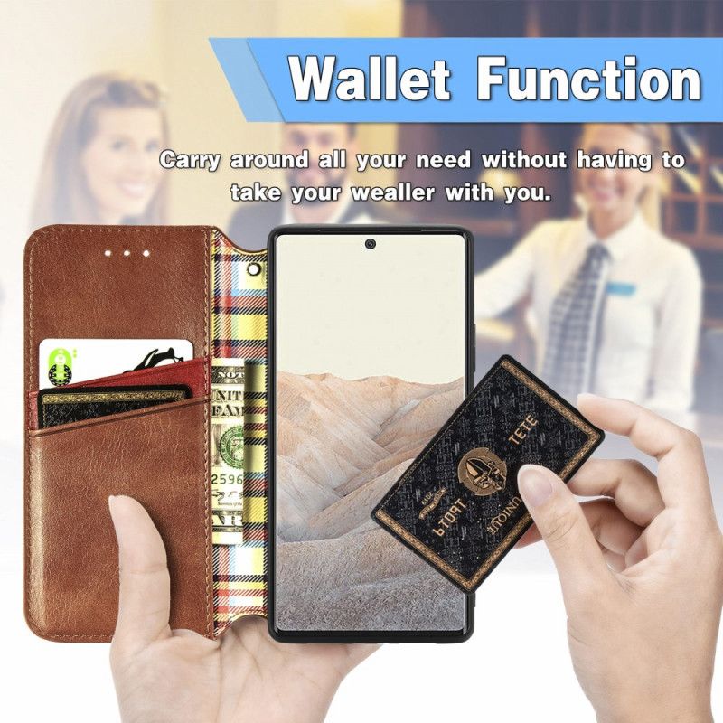 Din Google Pixel 6 er utrolig med det diamant-teksturerede klapcover i imiteret læder, der elegant beskytter din telefon.