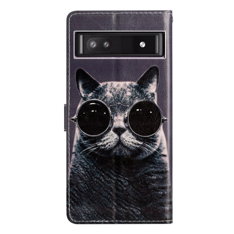 Læder Cover Google Pixel 7A Med Snor Strappy Cat Briller