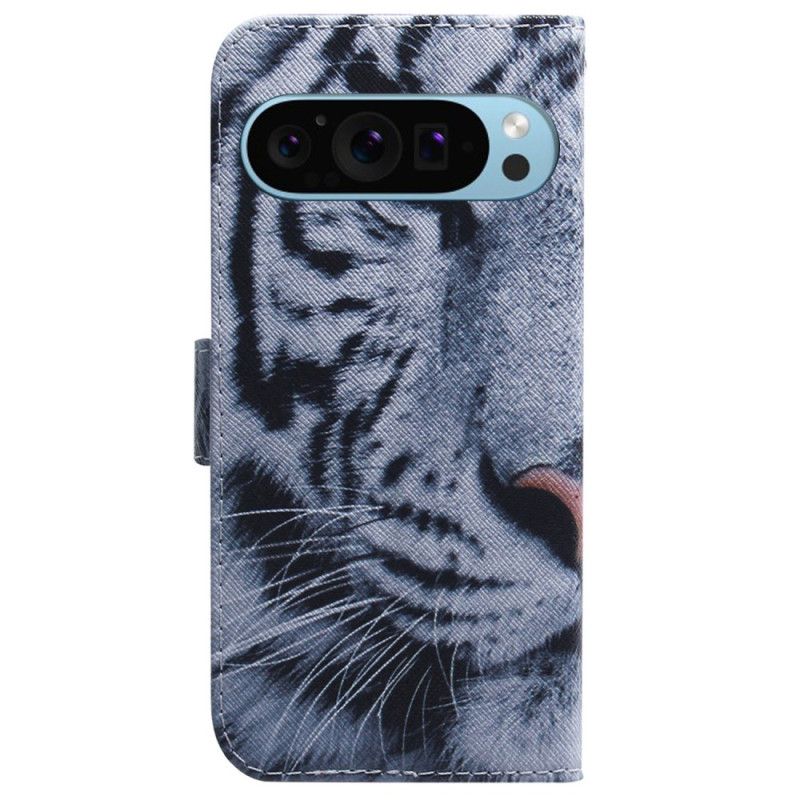 Et Telefoncover I Høj Kvalitet Til Google Pixel 9 / Pixel 9 Pro Med Tegnebogsdesign Og Tigerprint.