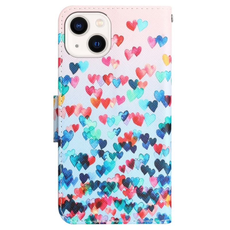 Læder Cover iPhone 15 Med Snor Hjerteregn Med Rem
