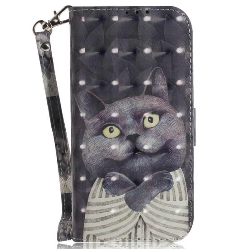 Læder Cover iPhone 15 Plus Med Snor Grafisk Kat Med Snor