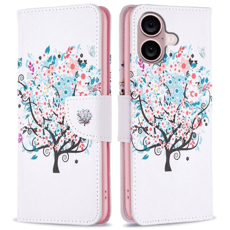Læder Cover iPhone 16 Plus Blomstret Træ
