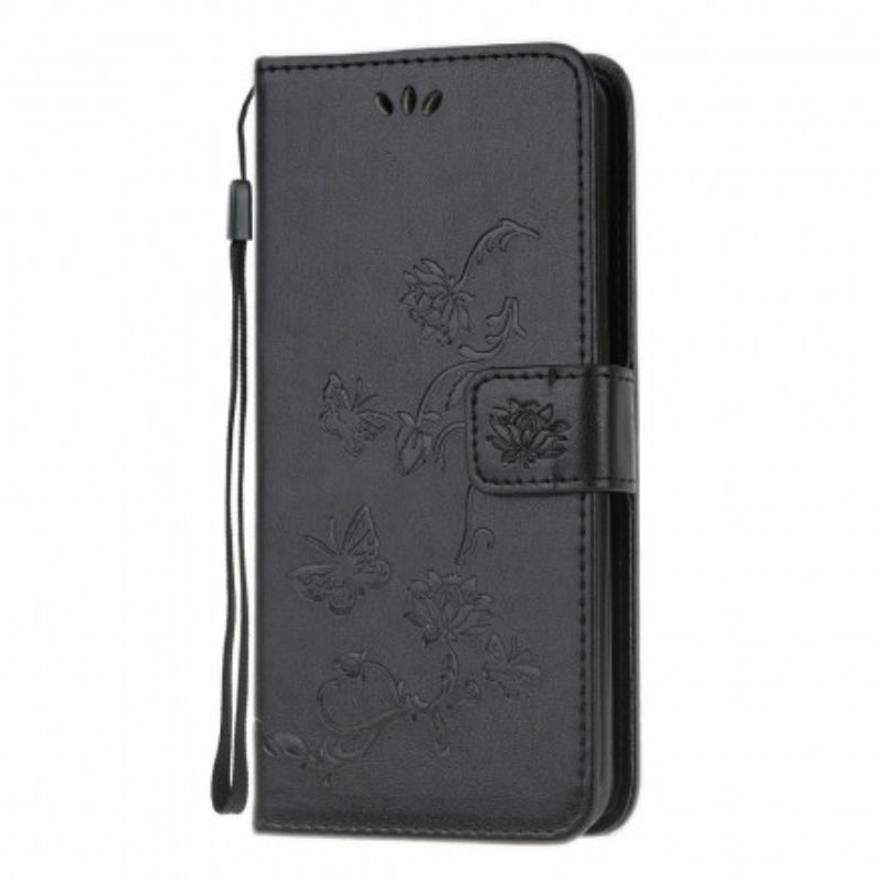 Læder Cover Moto G30 / G10 Telefon Etui Sommerfugle Og Blomster Strappy