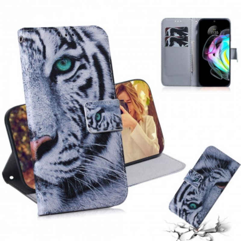 Læder Cover Motorola Edge 20 Telefon Etui Tiger Face