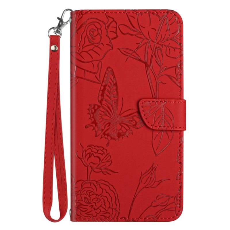 Læder Cover Motorola Edge 40 Pro Sommerfugl Med Snor