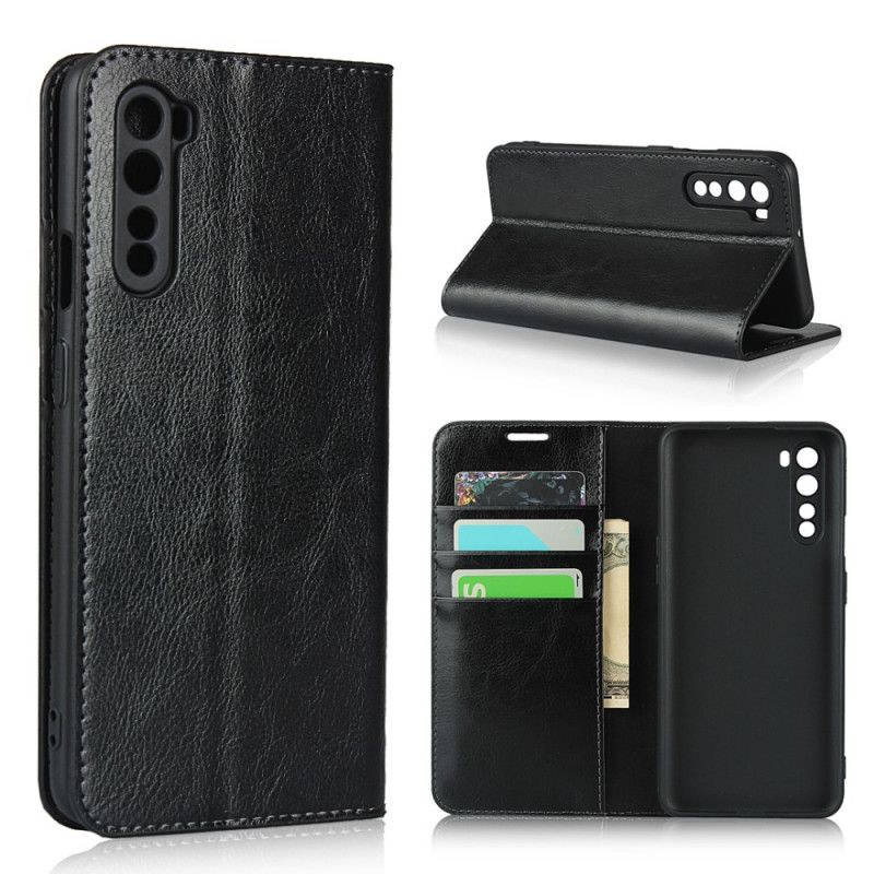 Læder Cover OnePlus Nord Sort Ægte Læder