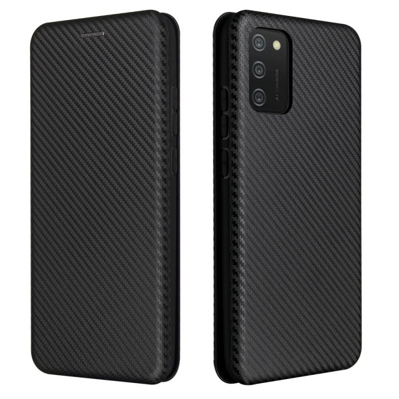 Læder Cover Samsung Galaxy A02s Sort Kulfiber