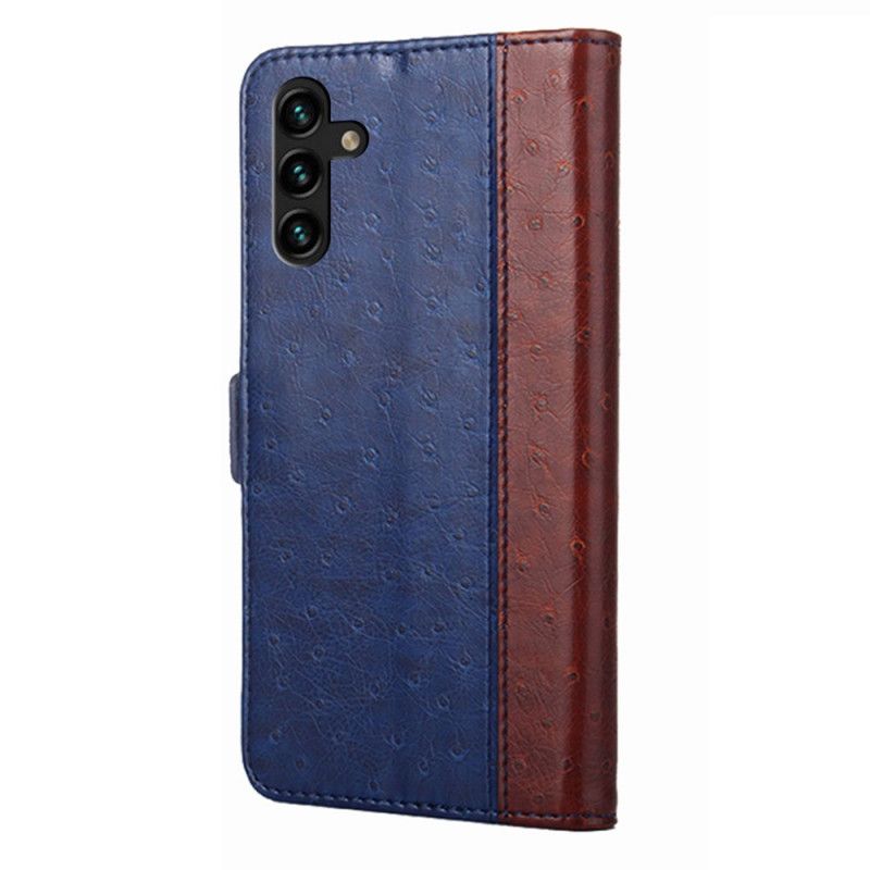 Din Samsung Galaxy A13 5G er vildt original med dette tofarvede imiterede lædercover med strudsehudstekstur.