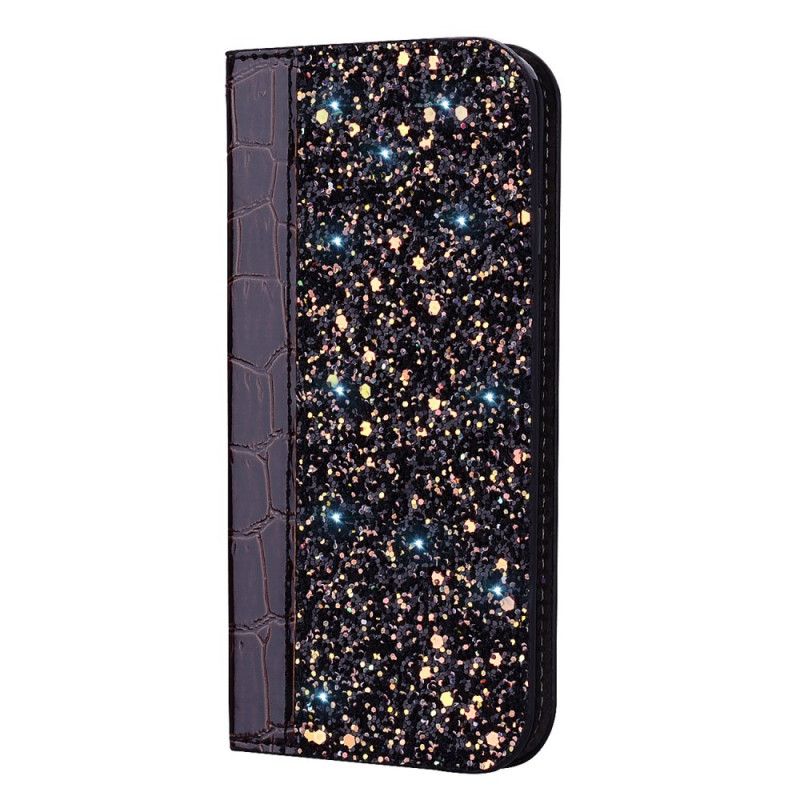 Læder Cover Samsung Galaxy A30 Sort Krokodillehudeffekt Og Pailletter Beskyttelse