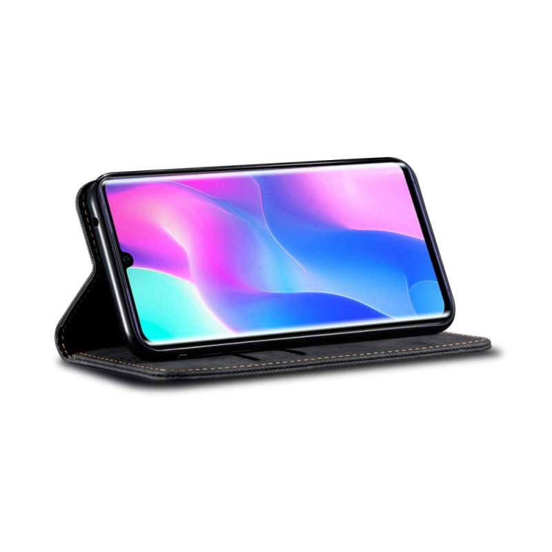 Klapdækslet i jeans stof sikrer beskyttelsen af hele Xiaomi Mi Note 10 Lite på daglig basis.