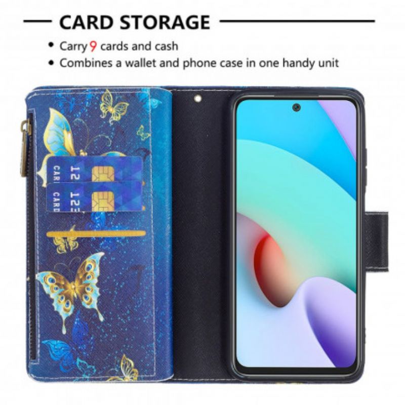 The Butterfly Zipped Pocket-coveret sikrer og tilbyder mange muligheder for Xiaomi Redmi 10.