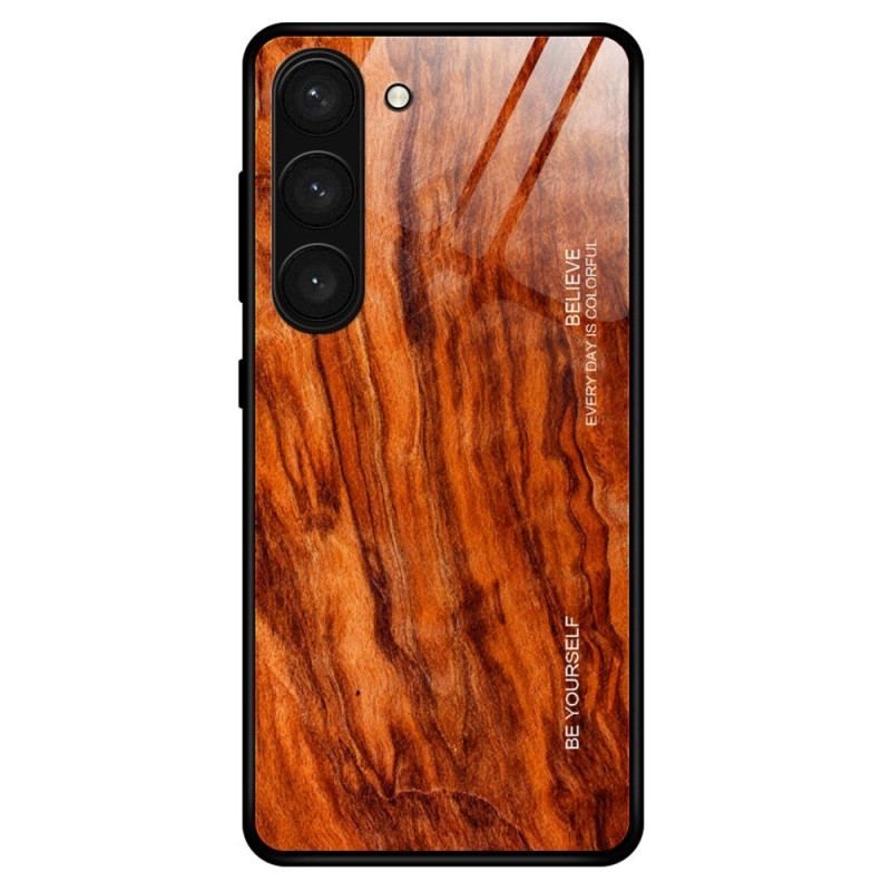 Et Enestående Hærdet Glas Etui Med Et Trædesign Designet Til At Sikre Din Samsung Galaxy S23 Plus 5G.