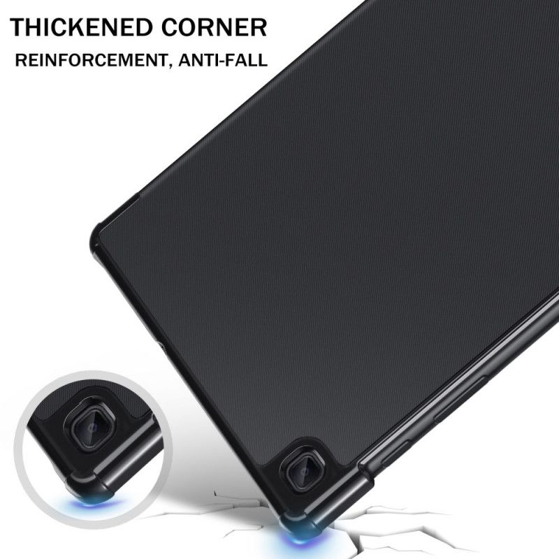 Tri Fold Smart etui med forstærkede hjørner er designet til at beskytte din Samsung Galaxy Tab S6 Lite effektivt med et sobert og ryddeløst design.